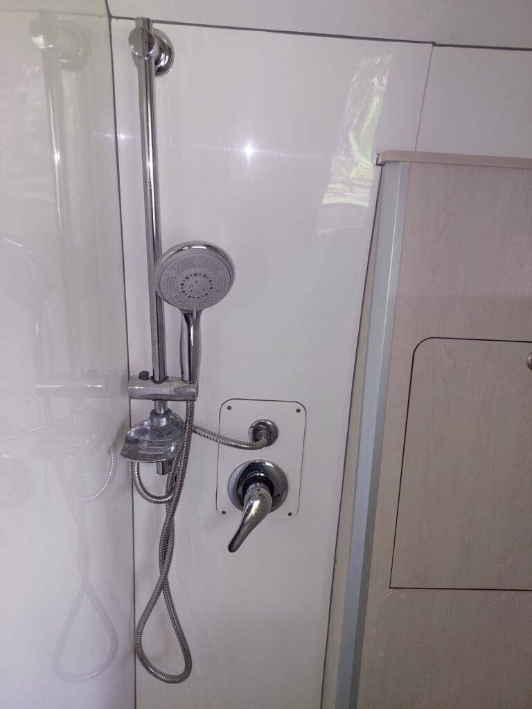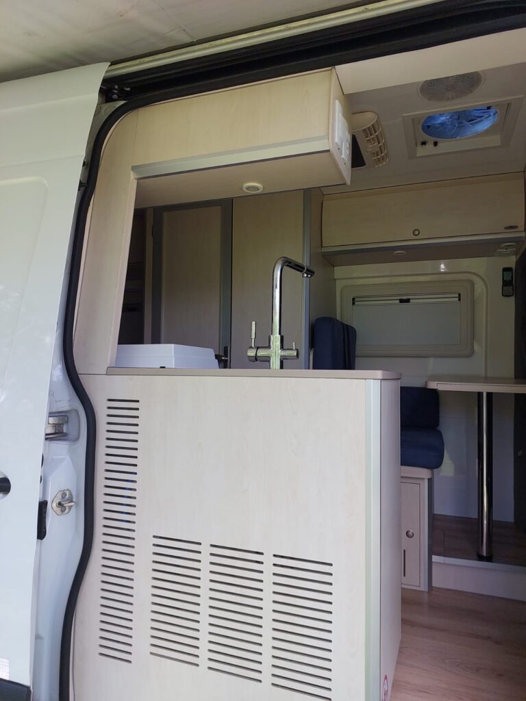- 1 Aquecedor de passagem (sistema boiler) com reservatório, alimentação a gás ou 110V (DOMETIC/ATWOOD), com ventilação para o lado externo do veículo