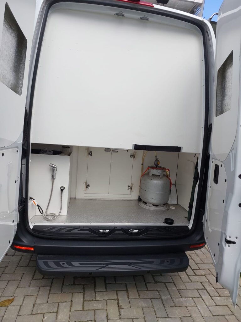 MOTORHOME modelo Outdoor, montado pela Victoria Motorhomes em 2022 numa Sprinter Furgão 416 CDI 2021/2022 (F42A UP3 10,5m³), Diesel. Emplacado como motor-casa, com adesivo e faixas reflexivas homologadas para o Mercosul. Eixo simples. CNH categoria B. Com 22.130 KM.