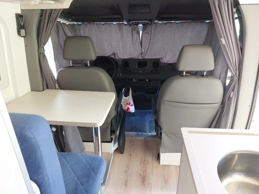 - Cortinas em tecido padrão para todo o para-brisa e na separação da cabine com a casa