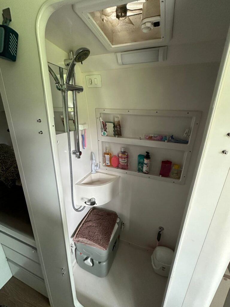 Dentro dinet fixa,banheiro com chuveiro a gás e vaso porta pot.