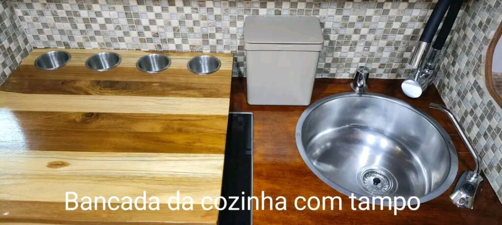 Pia em madeira de lei com cuba de inox (com três gavetas e 1portas)