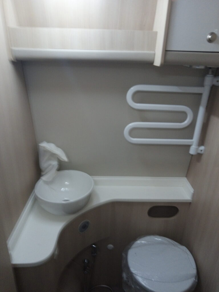 Motorhome quarto, banheiro separado (toilete/pia e box), dinete (cama solteiro), cozinha.