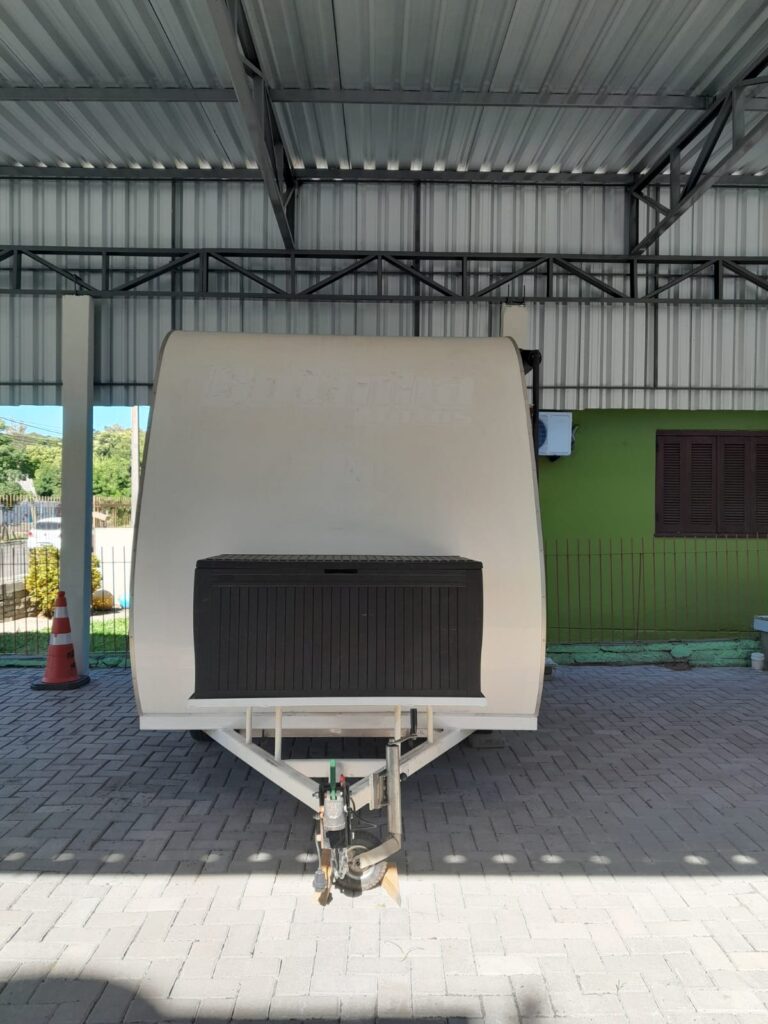 Trailer COMPLETO... fabricado com Vetroresina material sem emendas, ano 2022 na cor branca, aro 14...medidas internas 3 mts comp x 1,90 larg x 2 mts alt...ar condicionado, micro ondas, frigobar, TV 32 pol...3 janelas com mosquiteiro, porta lateral com escada e porta traseira com rampa para subir a moto e com chave que "tranca por dentro", forração interna com isolamento acustico e térmico...possui bau dianteiro(mangueira para agua, fio extensão)... bequilha(roda dianteira para manobra, PNEU)... molas reforçadas e amortecedor, reservatório de agua 50 lts, toldo lateral 2x3, cama de casal 1,40 x 1,90 que vira mesa, banheiro com vaso portapotti, chuveiro eletrico, pia no banheiro, pia na cozinha, fogareiro com botijao de gás de 5kg, iluminação externar e iluminaçao interna em Led 12v, carregador inteligente, bateria que dura ate quatro dias, 4 carregadores para celular, prateleiras com portas internas, barras estabilizadoras para nivelamento do trailer, ainda suporte interno para carregar moto...Novo Hamburgo/RS...51 984885727