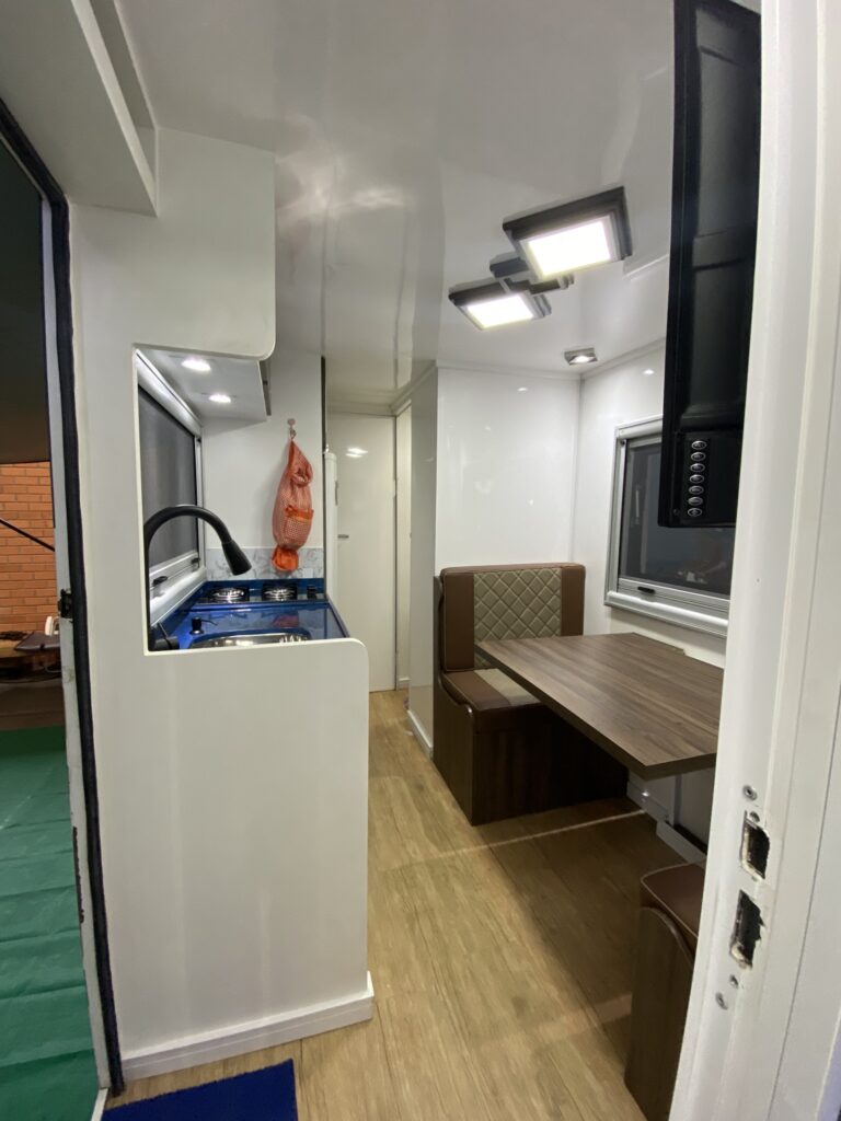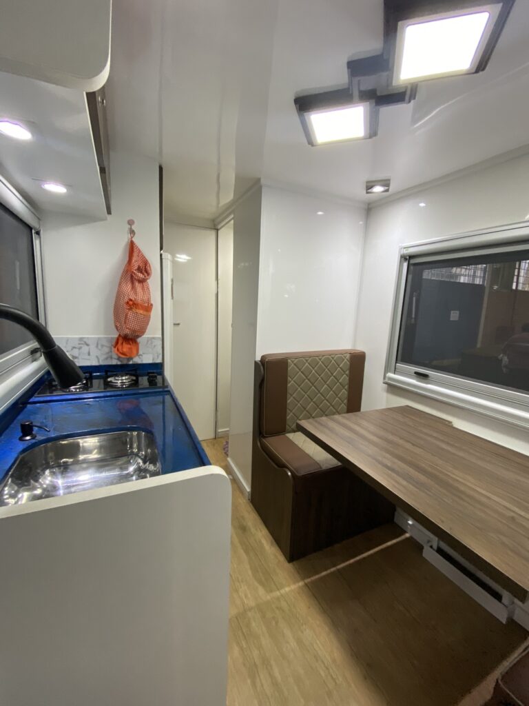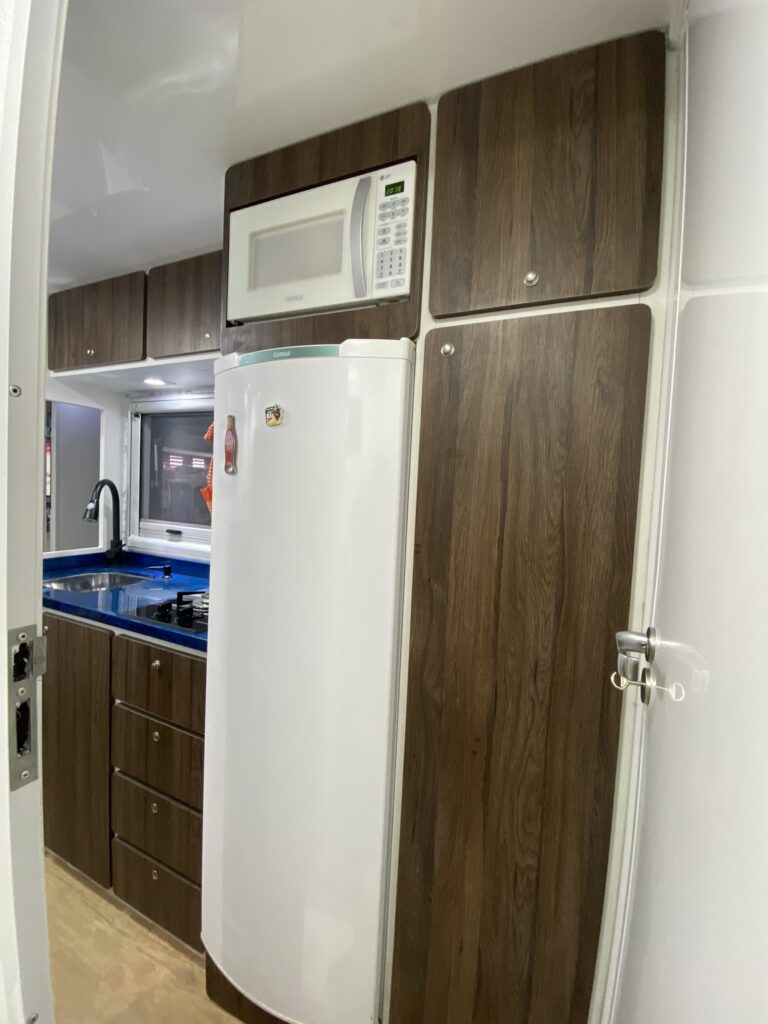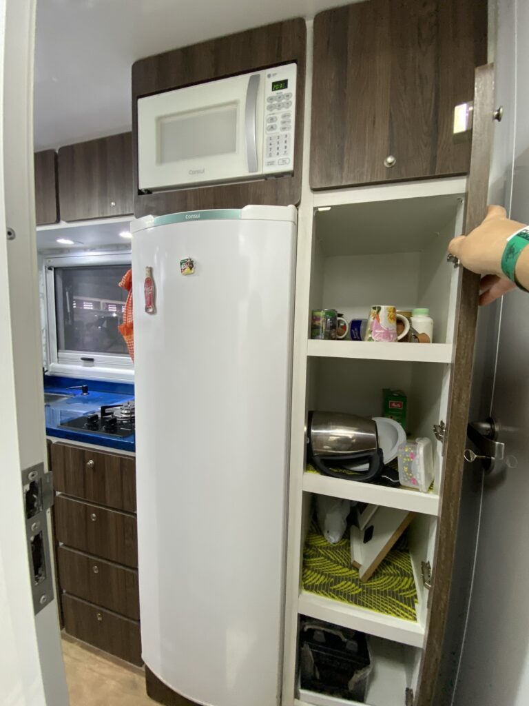 - Nicho externo amplo e trans passado (abertura dos dois lados do trailer), com armários embutidos.